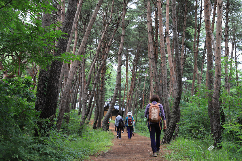 소나무 숲길이 끝나는 지점에서 도로를 가로지르면