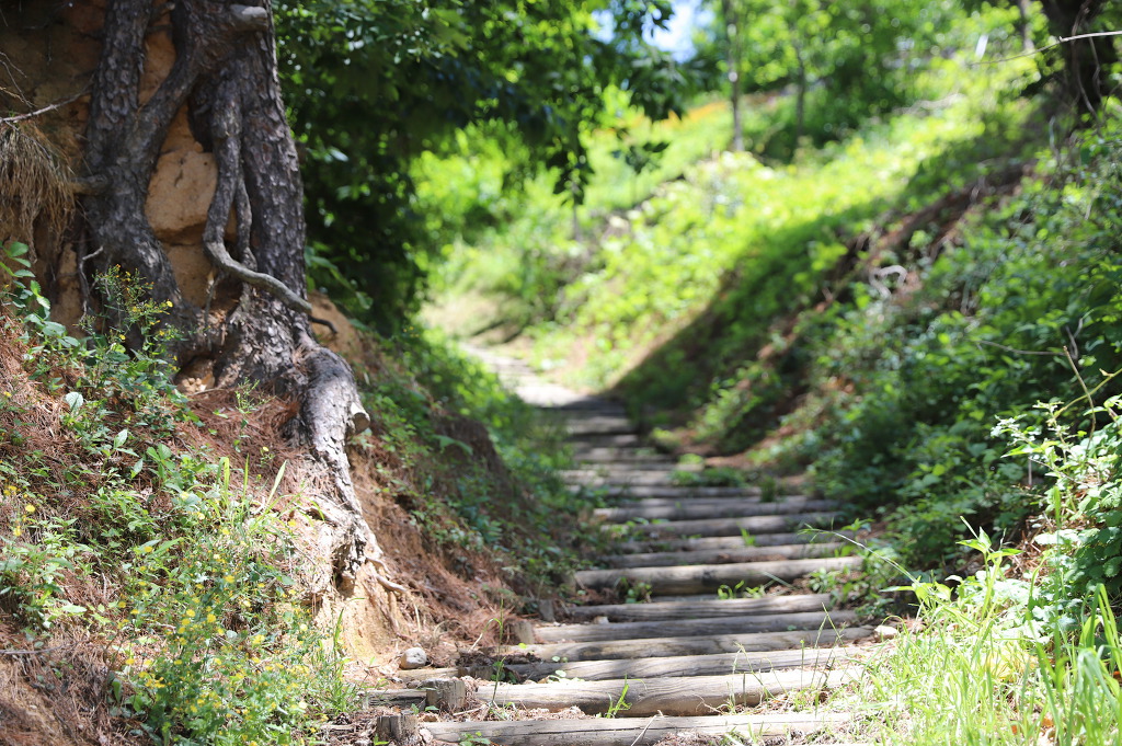 나무계단을 따라 마을길로