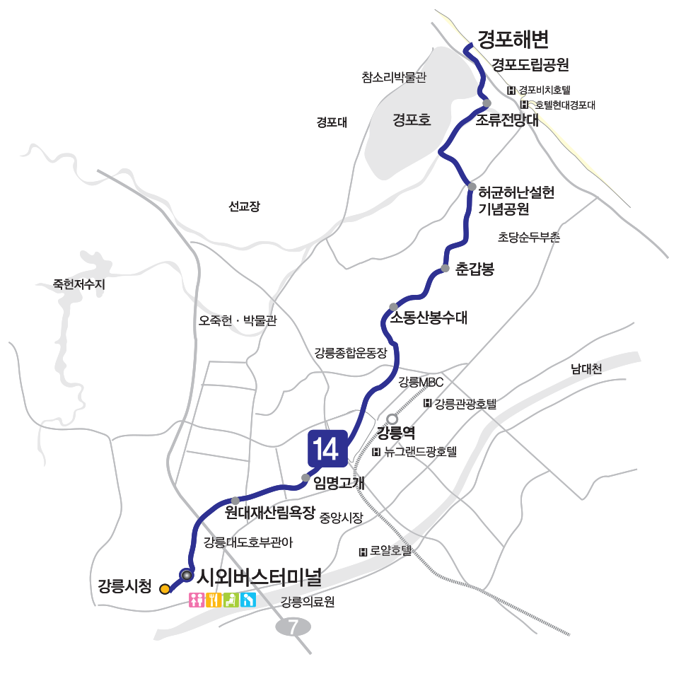 강릉 시청에서 출발하여