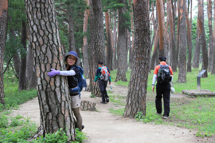 우거진 소나무 숲길을 걷습니다.