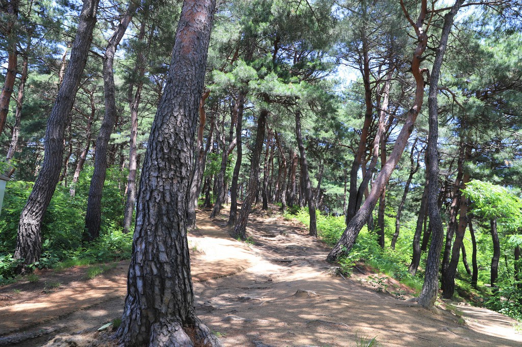 계단을 올라 울창한 소나무 숲길로 접어듭니다.