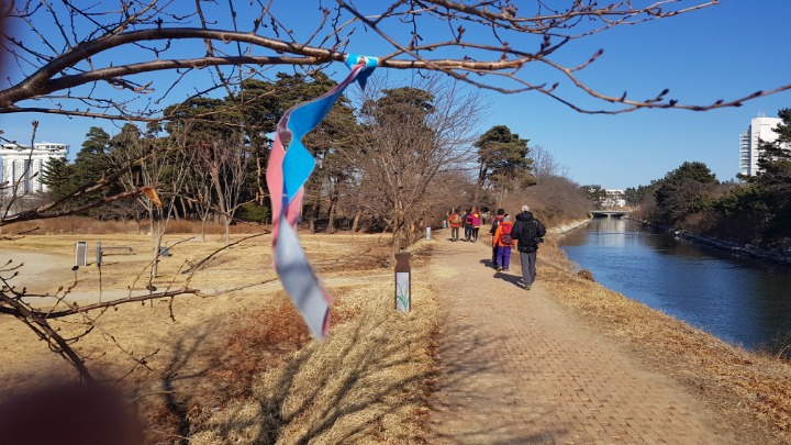 경포천 길을 따라 걸어 갑니다.