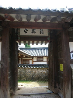 ‘용흥궁(龍興宮)’이라는 현판 아래 있는 대문을 통과하면 행랑채를 마주하고 안채가 있습니다. 돌계단을 올라가면 사랑채가 있으며, 안채와 사랑채 가까이에 우물이 있습니다.
