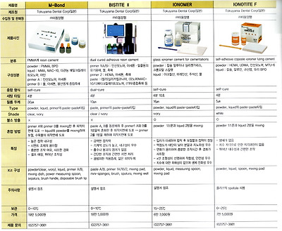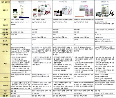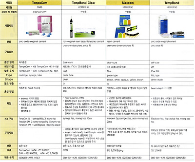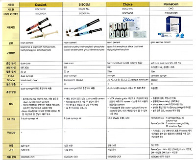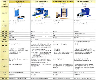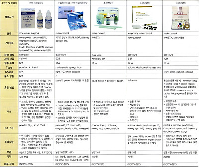 사실 치과용 시멘트 자료를 수집하면서 업체들 대부분은 보철시 두루 사용할 수 있는 제품군을 취급하고 있었다.