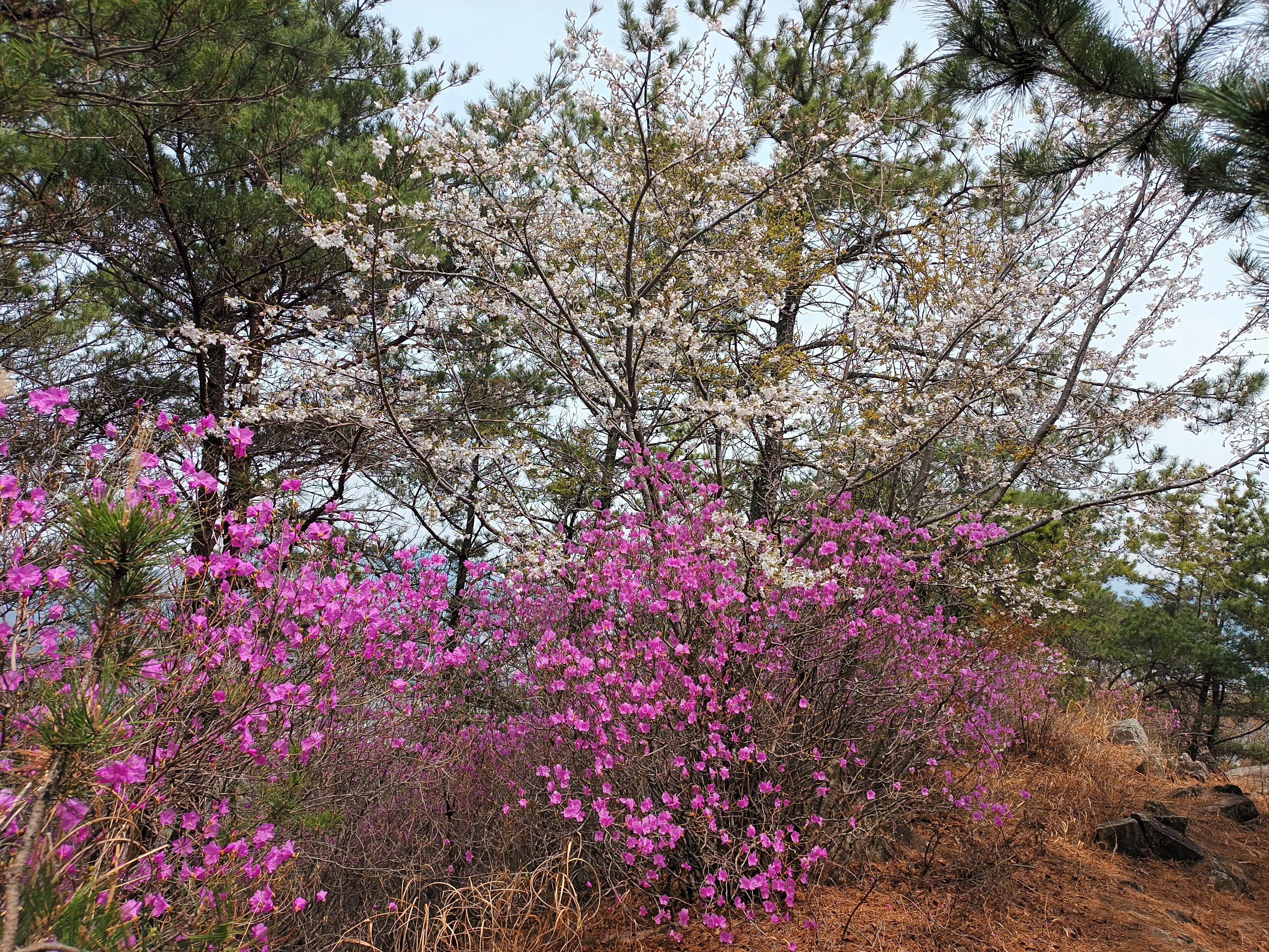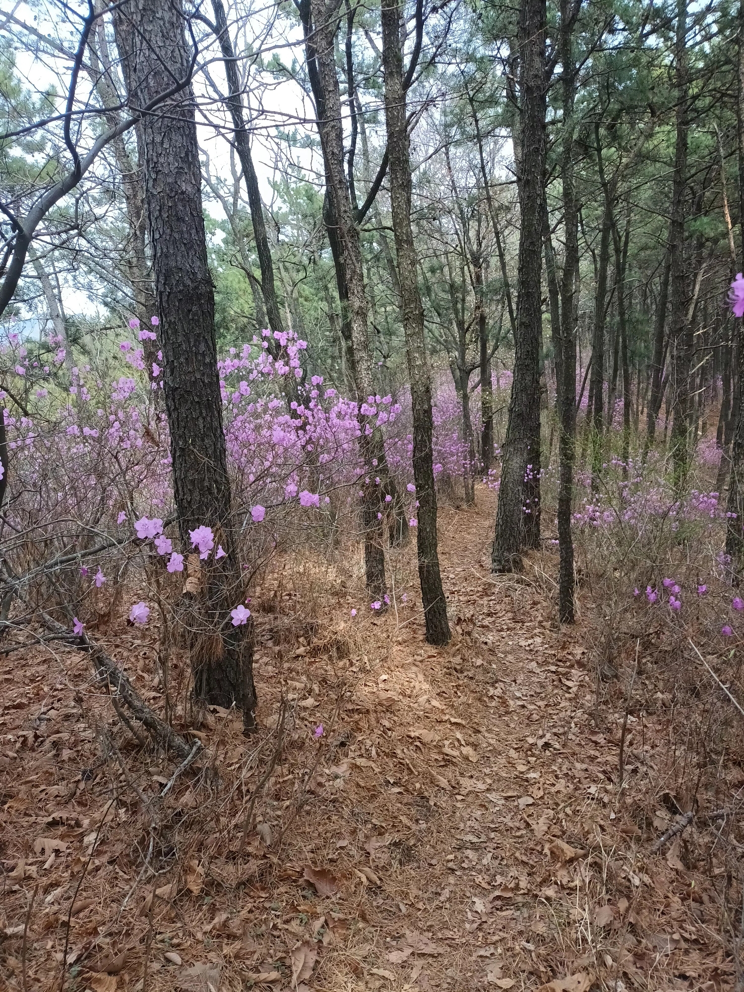 힘든 여정을 이어갔으나, 천주산 진달래는 아직 만개