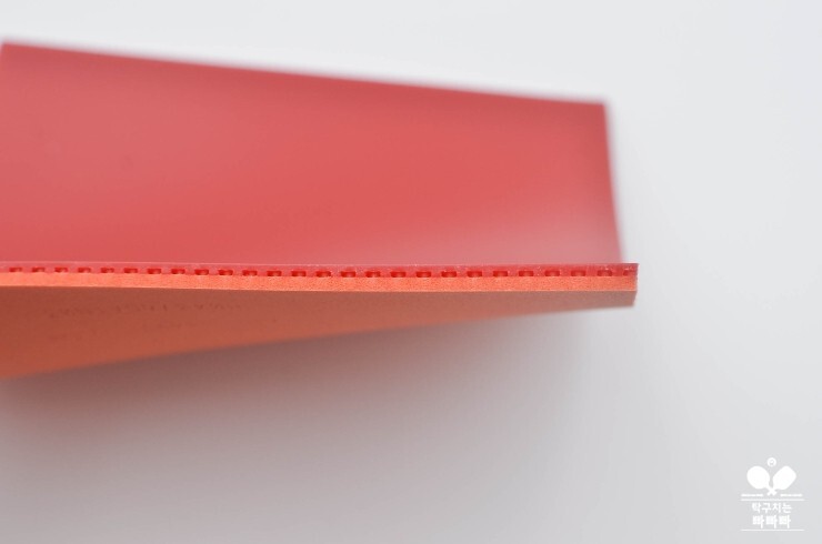 단단한 감각과 달리 강한 회전이 인상적이다. 드라이브 시 공 끌림이 좋아 회전량이 상당하다. 내 힘을 온전히 실을 수 있으며 회전 드라이브 득점이 크게 늘었다. 똑같은 스윙인데도, 더 강한 회전이 만들어진다. 타구 음이 강해 상대에게 전해지는 위압감도 크다. 공이 빠르게 뻗어가다 테이블 2/3 지점에서 강하게 튀어 오른다. 초보자, 상급자 할 것 없이 자신의 공을 더욱 위력적으로 만들어주는 러버. 처음 사용해도 적응이 어렵지 않다. 같은 타이밍에 백핸드에서 범실이 좋 더 많았다. 개인적으로 백핸드보다는 포핸드에 쓸 때가 더 좋았음.
