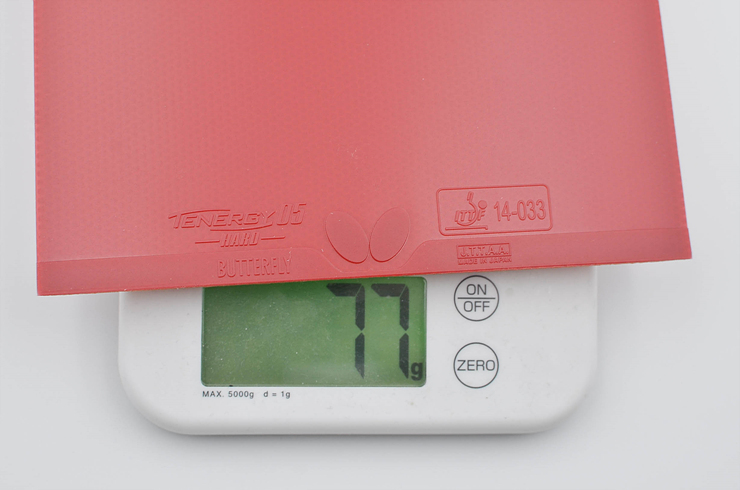러버 무게는 커팅 후 펜홀더 기준 46g, 셰이크핸드 기준 51g 정도가 나왔습니다.