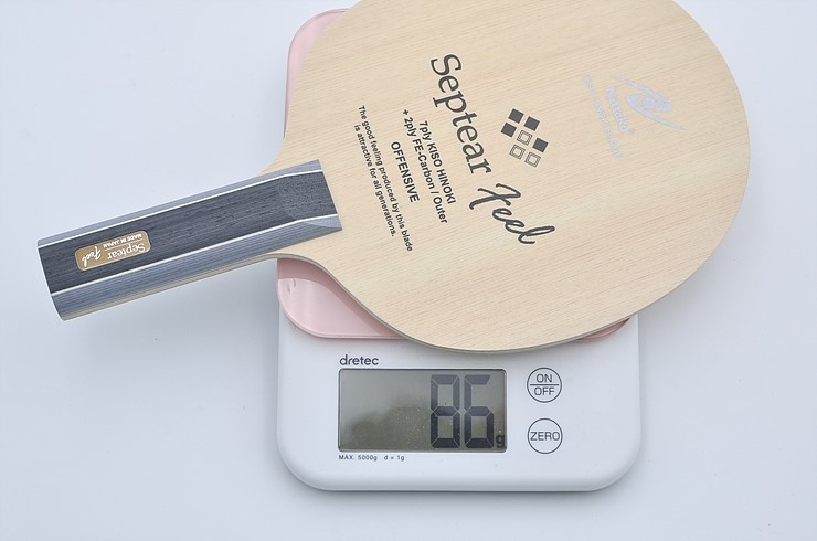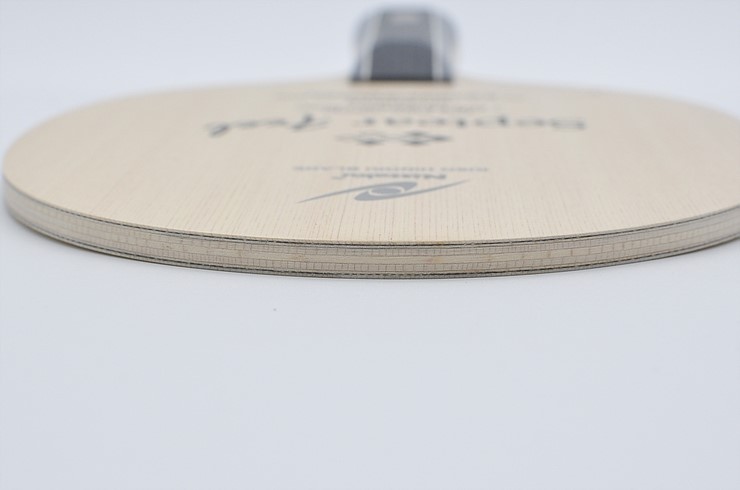그립은 약간 두툼하고 손에 꽉 차는 느낌. 만듦새가 매우 깔끔하다. 처음 포핸드를 치면 텅텅 소리와 함께 울림이 크게 느껴진다. 볼이 날카롭지는 않지만 매우 안정적이다. 전체적인 볼 궤적(軌跡)은 짧은 편. 카본 라켓이라기 보다 오래전 7겹 합판에 가까운 감각이다. 드라이브를 걸면, 볼을 잘 잡아 쏘아준다는 느낌. 라켓 면을 완전히 오픈해 두껍게 걸어올리면 강렬하지는 않지만, 강한 회전 볼이 만들어진다. 좋은 회전에 적당한 스피드를 지닌 블레이드.