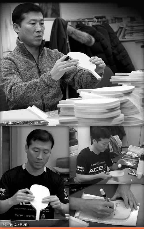 그리고, 김택수 감독의 네이밍이 그대로 사용된 '김택수 라켓'은 지금까지 펜홀더 유저라면 누구나 한 번쯤은 사용 경험이 있을 정도로 큰 인기를 모은 제품입니다. 김택수 라켓은 지금까지 몇 개 브랜드를 통해 출시(出市) 되었는데, 이번에는 티코어 시리즈로 유명한 티마운트(Tmount)에서 새로 출시되었습니다. 티마운트 김택수 라켓의 가장 큰 특징은 김택수 감독의 최종 검수와 승인입니다. 김택수 감독은 라켓에 사용될 목재를 최종 검수하고, 승인하는 과정에 직접 참여해 제품 퀄리티를 높였습니다.