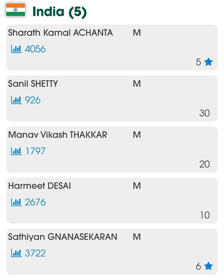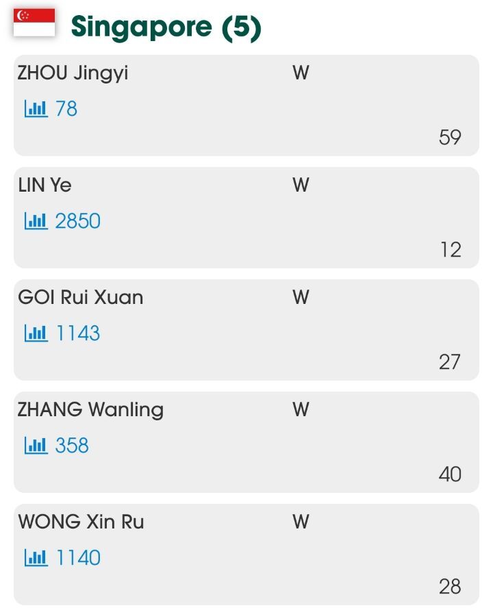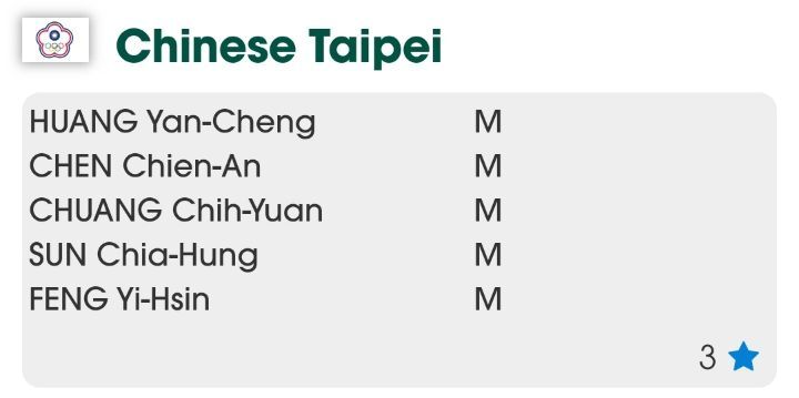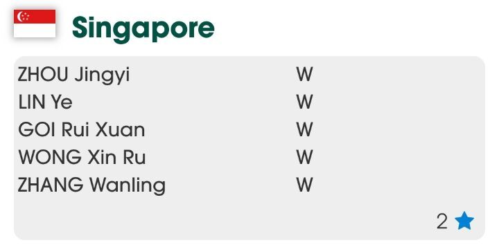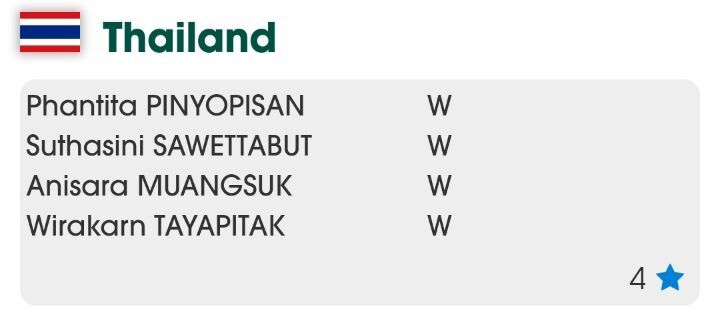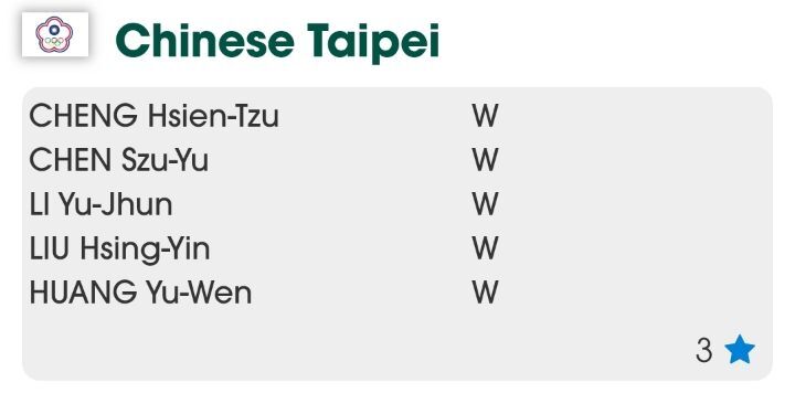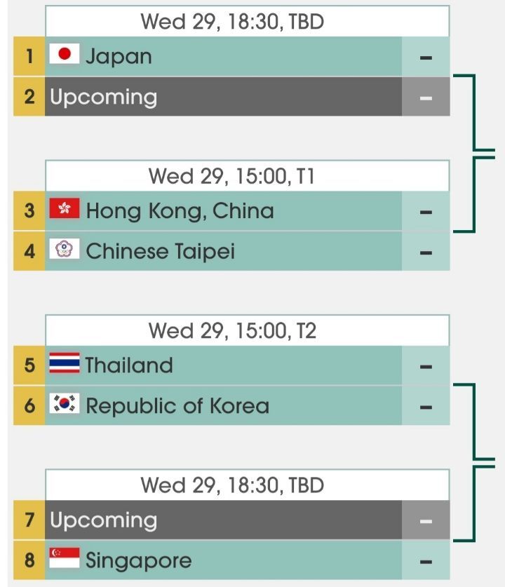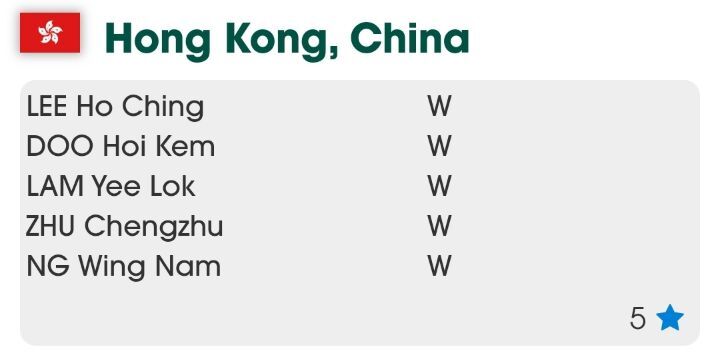 오른쪽 숫자는 단체전 시드번호
