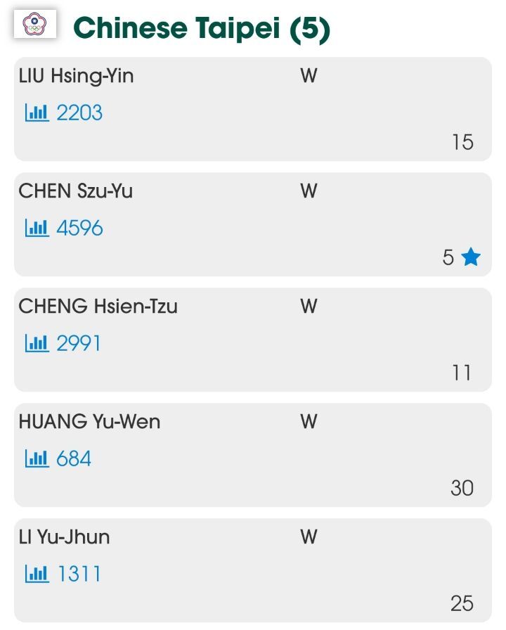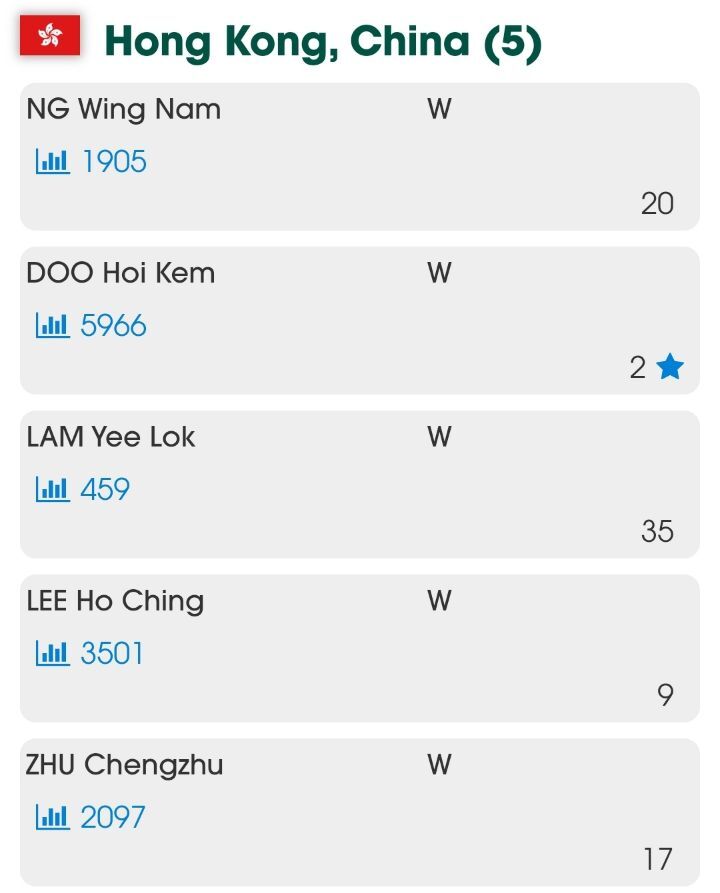 오른쪽 숫자는 개인전 시드번호