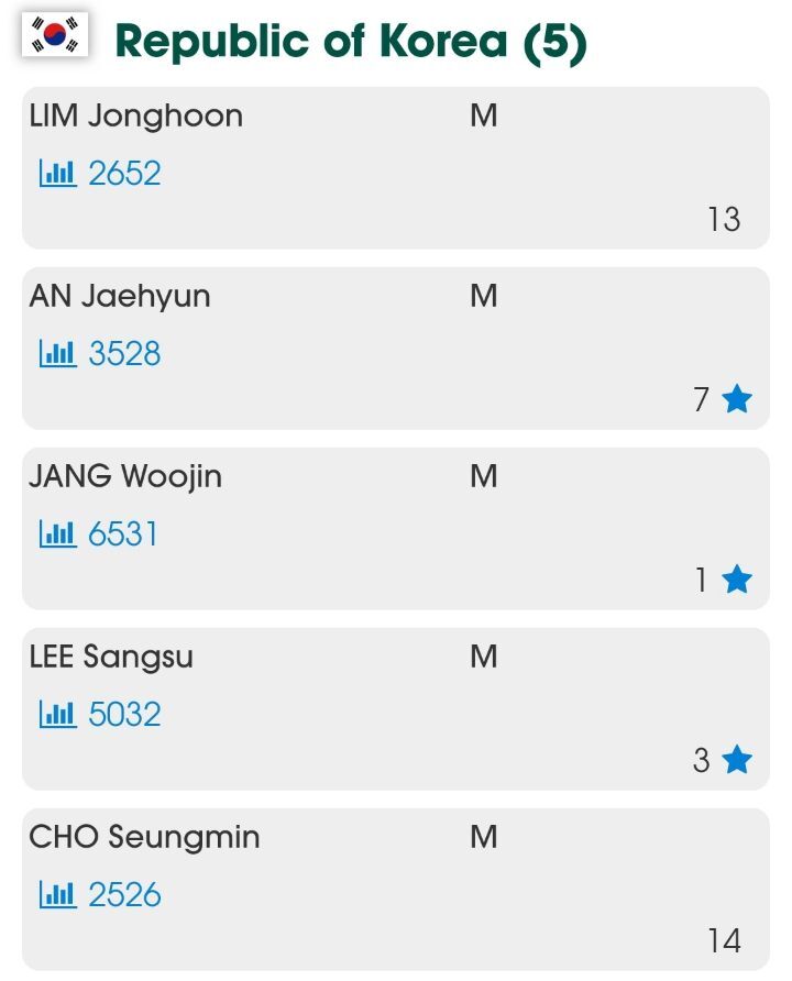 작성자정다운 작성시간 21.09.28 암쪼록 울 나라 남자 단체전에 출전하시는 선수들 모두