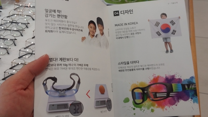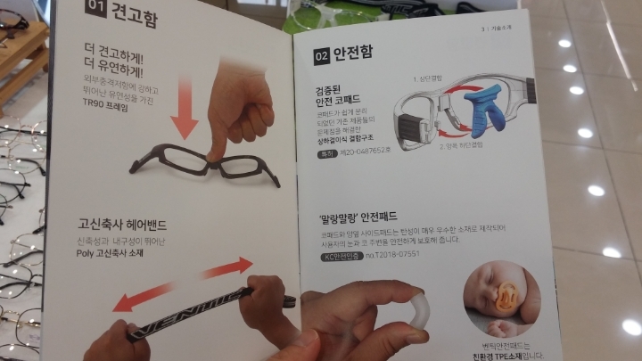 >>> 필자가 찾아간 안경점에 이렇게 데이데이2 안경도 물론 진열되어 있었다. 인기상품이라고 한다. 이벤트로 받은 데이데이2 안경은 2019년판, 아래 안경은 2020년 신형이라고 한다. 다른 점은 코받침. 필자는 개인취향으로 이번 이벤트로 받은 2019년 판이 좋다. 아래 안경은 실제 사무용,일상형(?) 안경처럼 코받침이 되어있는데, 이 코받침은 내구성이 약하고 때도 잘탄다. 이벤트로 받은 데이데이2 2019년판의 빨간 실리콘 코받침이 더 나을 듯.