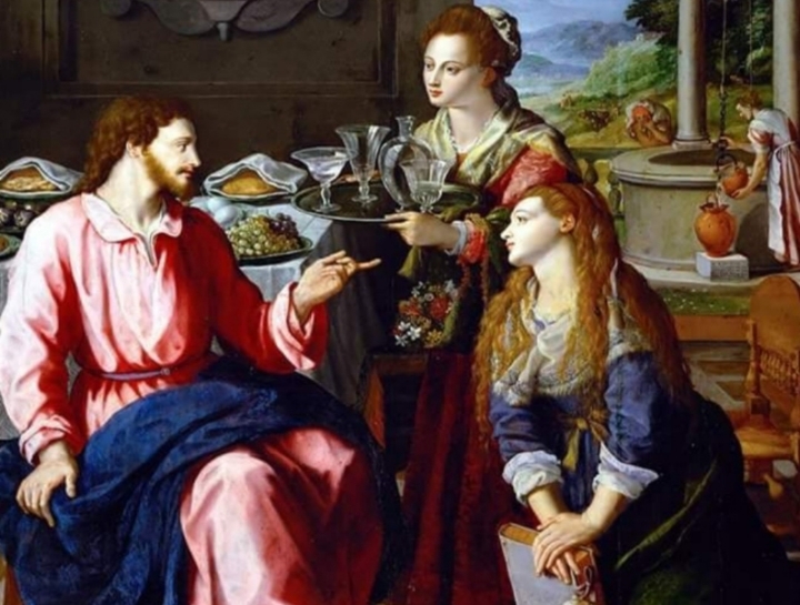 음식 시중을 들던 마르타는 동생 마리아까지 자신을 도와서 시중을 거들게 하려 들지만,