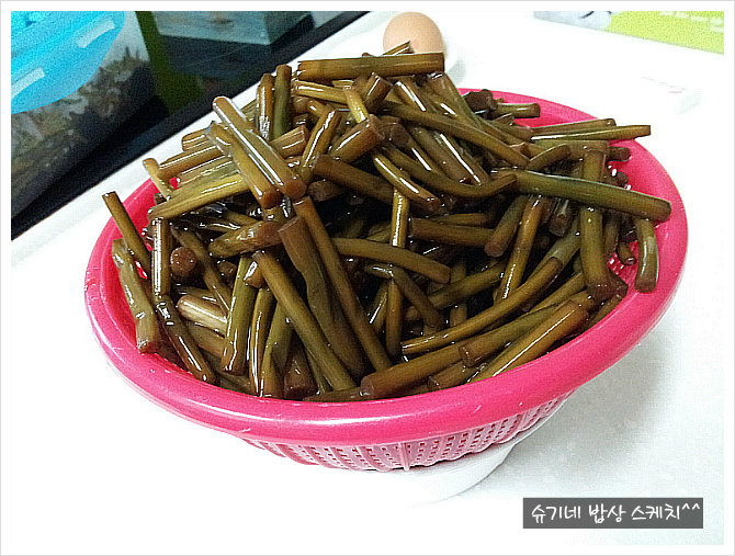 요만큼 남은거 양념해서 밑반찬으로 먹을려고 체에 받쳐놨습니당^^