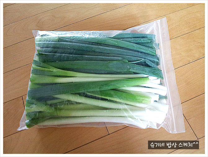 대파는 적당하게잘라 지퍼백에 꺼내기쉽게 입구쪽으로 세워서 넣어주고