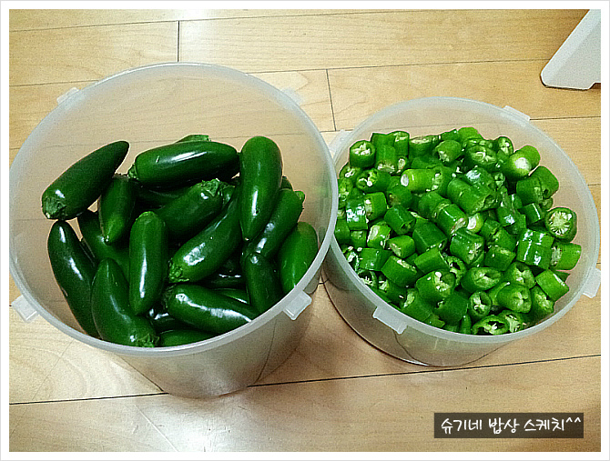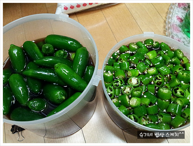 아삭이고추랑 퍼펙트고추장아찌 담을건데요, 아삭이는 울 작은왕자용으로 담는겁니다. 하하..