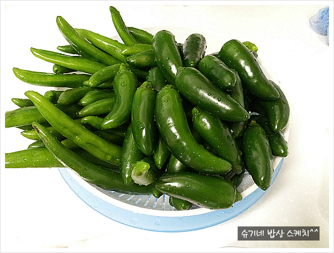 고추도 깨끗하게 씻어 받쳐둡니다.