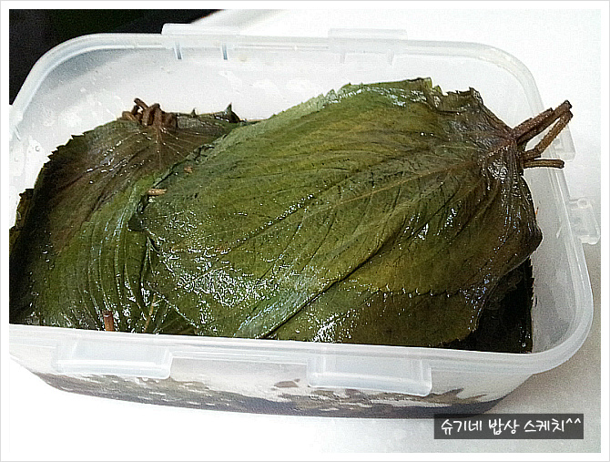 깻잎 몇장씩잡고 앞뒤로 담갔다 통에 담아 절여논건데 깻잎에서 물이나와 싱겁드라구요.