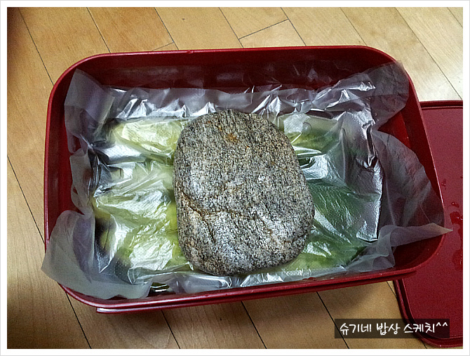 햇빛이 들지 않는 주방 구석이나 베란다 어디쯤에 5일정도 방치했다가 냉장고에넣고 이삼일 후에 꺼내서