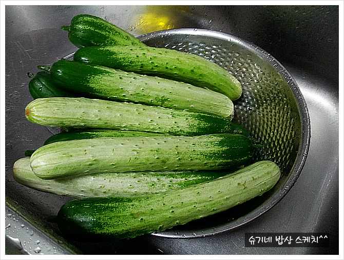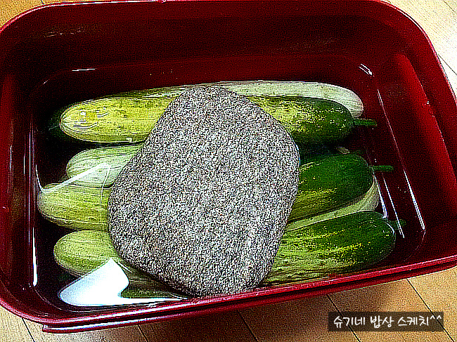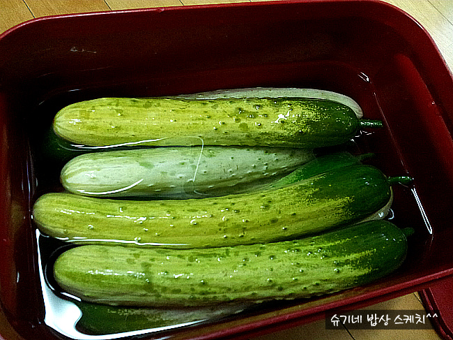물론 스텐이나 유리재질 보관통이 있다면 오이담고 거기에 물을 부어주면 되겠지요^^