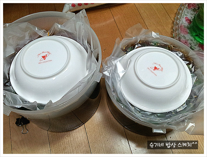 이것도 비닐팩으로 한장씩 씌워주고 크기 맞는 접시 하나씩 올려준후 뚜껑 꼭~ 덮어서