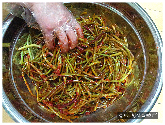 드시면 되는데 저렇게 열개 정도 무치면 반찬통 큰거로 하나 나옵니다.