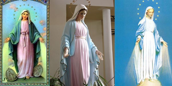 이 밖에 많은 성모상이 있지만, 한 가지만 더, 유명한 성모상을 말씀드리자면,, '기적의 메달 성모상'이 있습니다. 같은 성모상을 뜻하는 다른 말로는 '원죄 없이 잉태되신 성모상', '성모 무염시태 성상', '은총의 성모상'이 있는데 모두 1830년 뤼드박에서 발현하신 모습으로 만들어진 것입니다. 원래는 카타리나 라부레 성녀에게 '메달'을 만들라고 하셨는데, 그 모습이 성상으로도 많이 알려져 있습니다. '원죄없으신 잉태' 교의가 선포되기 전이었지만, 성모님께서 메달에 새겨 넣으라고 알려주신 기도문에 '원죄없이 잉태되신 동정 마리아님, 당신께 매달리는...'이라고 되어 있었기 때문에, '원죄 없으신 잉태 성모상'이라고 불리는 것입니다. 특징적으로 지구 위에 큰 뱀이 있고, 그 뱀을 밟고 계시는 성모상이며, 손을 아래쪽으로 온화하게 벌리고 계십니다. (메달에는 손에서 빛이 아래로 뻗어가는 선이 새겨져 있습니다) 레지오 회합에서 쓰이는 성모상이며., '메쥬고리예의 성모'로 유명한 '티할리나 성당'의 성모상도 같은 것입니다. 이상입니다. ^^