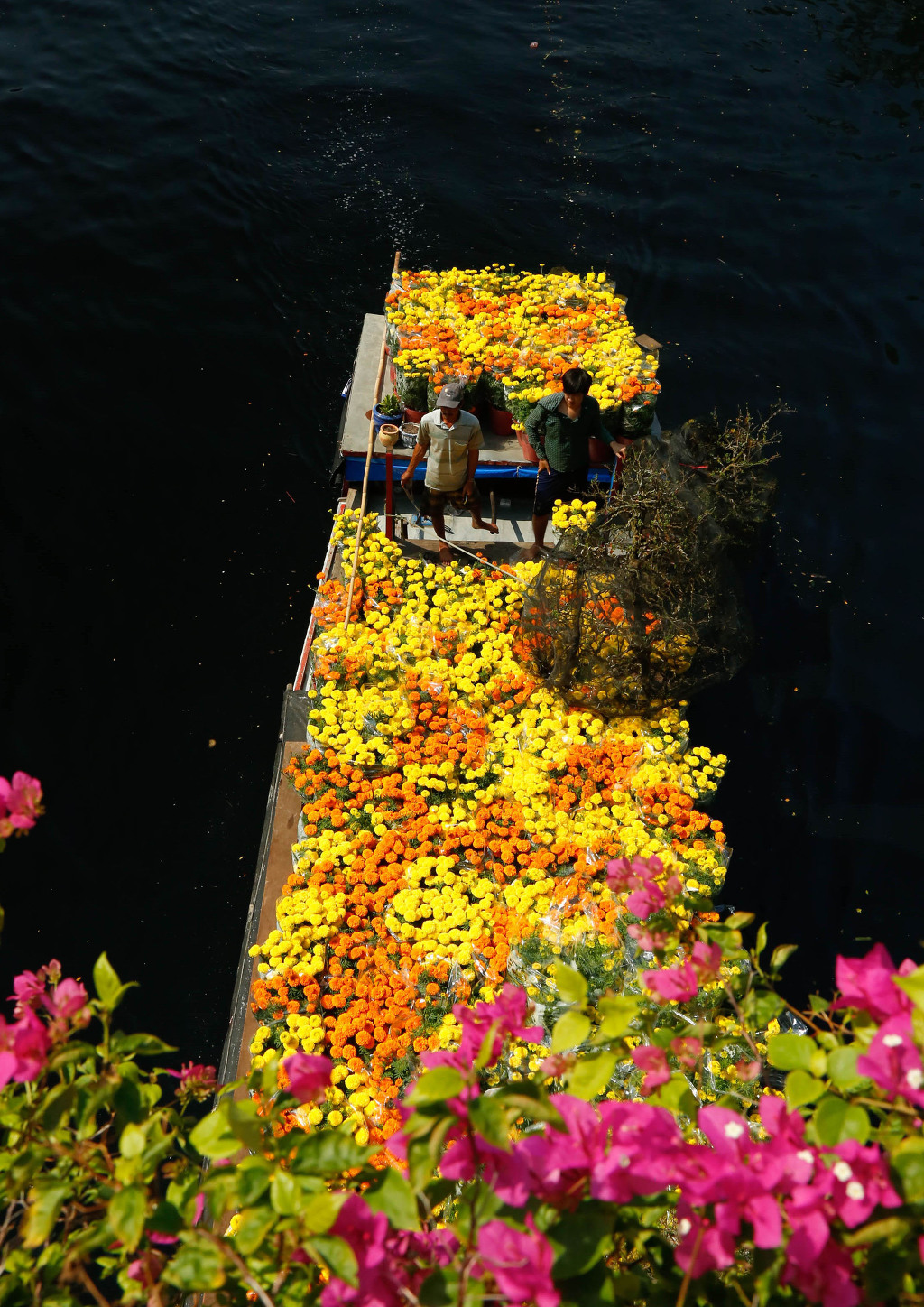 베트남 남부의 2km 넘게 늘어선 선상 꽃시장