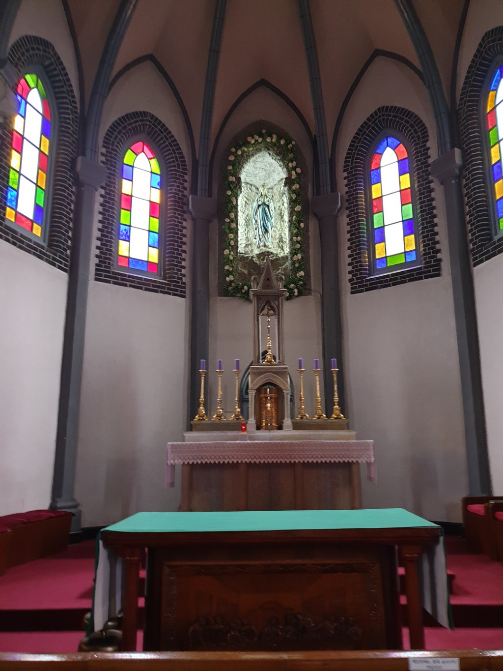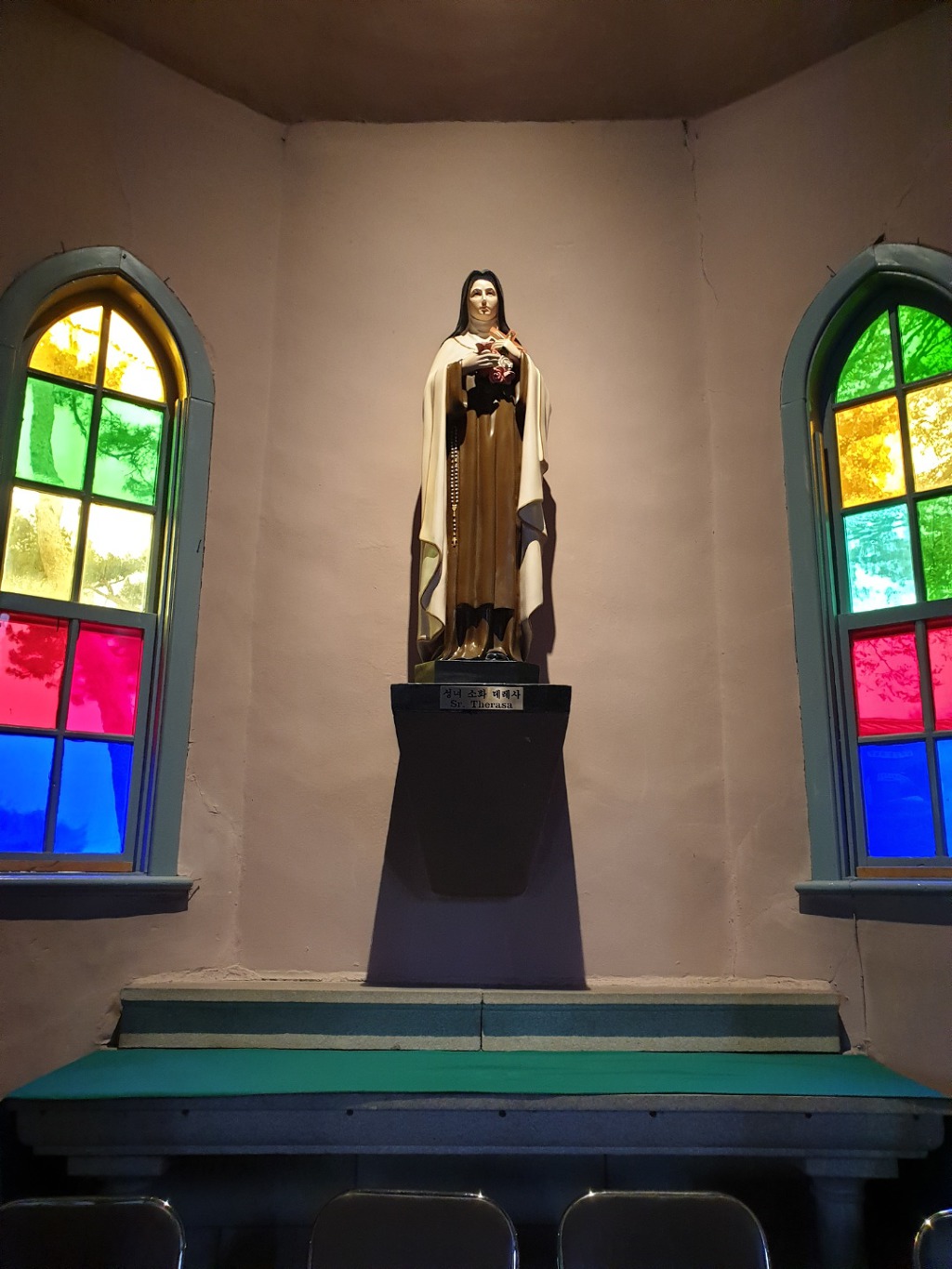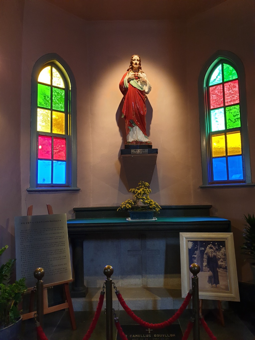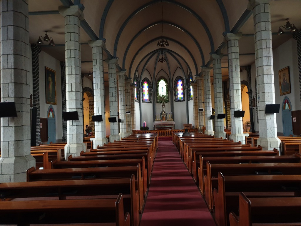 작성자희문과 작성자 본인 여부 작성자 작성시간 19.12.04 감곡성전의 특징적인 면을 하나 말씀드리겠습니다. 다른 성전은 십자가가 성전 중앙 제일 높은 위치에 자리를 잡고 있습니다. 그런데 감곡성전 십자가 보다 높은 위치에 칠고의 성모님이 자리하고 계세요. 칠고란 6.25때 인민군이 성전을 인민군 관사처럼 사용했는데 자꾸 안좋은 일이 생겼답니다. 그리고 그 원인을 성모상이라고 보고 총을 쐈는데 7발이 성모상을 관통했는데도 부서지질 않았답니다. 화가난 인민군이 기관총으로 마구 쐈는데도 총알이 다 빗나갔다고 하네요. 원래 성모님은 공산주의를 싫어하십니다. 왜냐하면 사람의 정신세계도 물질의 흐름으로 파악하는 유물론을 기반으로 나온 사상이라 신의 존재와 인간의 존엄성을 ...