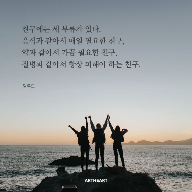 익자삼우(益者三友), 빈자삼우( 貧者三友) 세계적 갑부였던 월마트의 창업자 샘 월튼이 임종을 앞두고 자신의 삶을 돌아보니 친구라 부를 수 있는 사람이 없는 것을 한탄을 하며 크게 후회 하였다고 한다. 내가 친구가 없는 이유는 내가 다른 사람의 친구가 되어 주지 않았기 때문이란 말에서 알 수 있듯, 좋은 친구를 얻는 일은 전적으로 자신이 하기에 달렸다. 예로부터 친구로 삼지 말아야 할 사람으로는 五無를 들고 있다. 무정(無情), 무례(無禮), 무식(無識), 무도(無道), 무능(無能)한 인간을 말한다. 그렇다면 과연 참된 친구란?. 논어에 공자님이 제시한 세 가지 기준이 나온다. 먼저 유익한 세 친구익자삼우(益者三友)는 정직한 사람, 신의가 있는 사람, 견문이 많은 사람이다. 반면 해로운 세 친구 손자삼우(損者三友)는 아첨하는 사람, 줏대 없는 사람, 겉으로 친한 척하고 성의가 없는 사람이라고 하였다 살면서 내가 益者三友만 찾지 말고 내가 먼저 남에게 損者三友보다 益者三友가 될 수 있도록 노력해야 할 것입니다. |