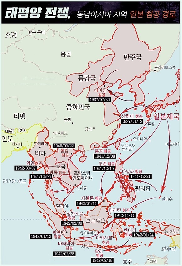 1) 서양 제국주의 세력들이 일본에 의해 몰락해 가는 시간대