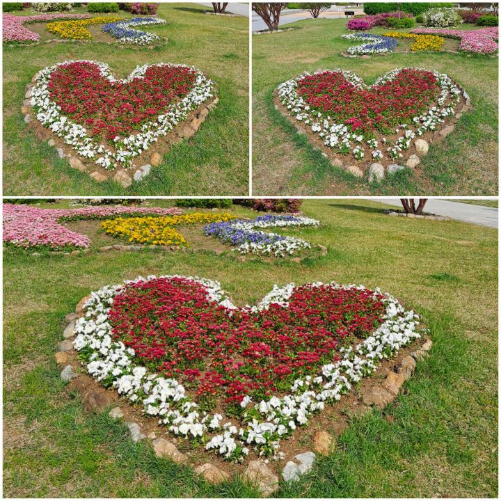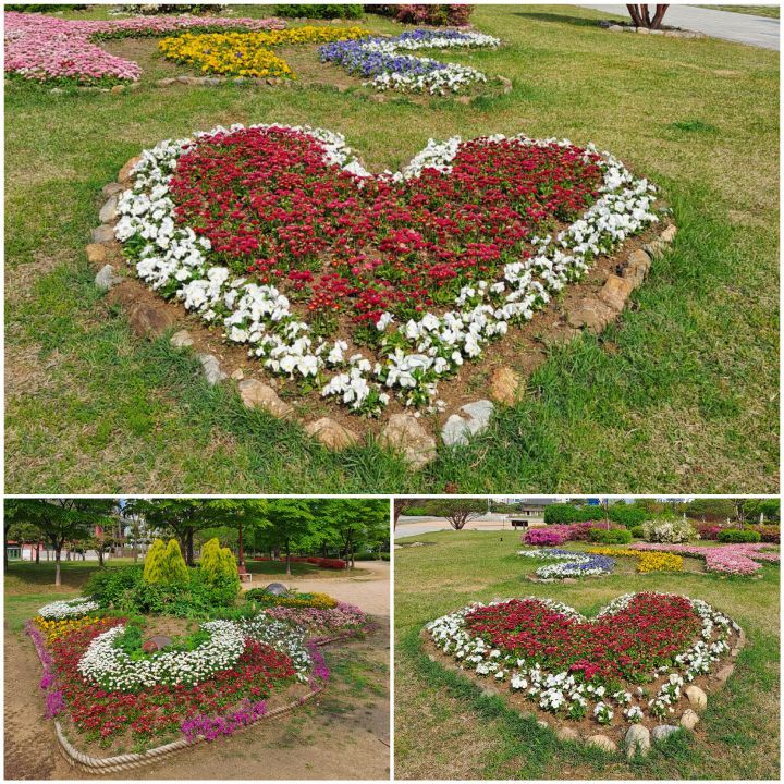 공원에 예쁘게 가꾸어 놓은 하트화단을 찍어놨어요