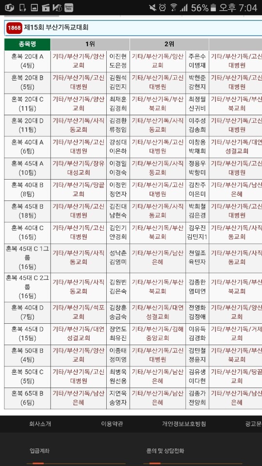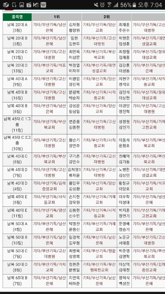 제15회 부산기독배드민턴연합회장배 및 고신대학교 복음병원장배기대회 입상자 명단 작성자서민규|작성시간16.12.25|조회수185 목록 댓글 0 글자크기 작게가 글자크기 크게가 다음검색 현재 게시글 추가 기능 열기 북마크 공유하기 신고 센터로 신고 댓글 댓글 0 댓글쓰기 답글쓰기 댓글 리스트
