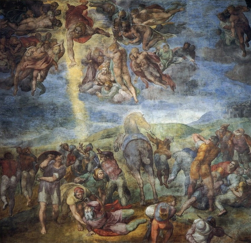 아래 그림은 바울의 회심, 미켈란젤로 1542 벽화,당시는 그림으로 신앙심을 표현하는 시대였다.