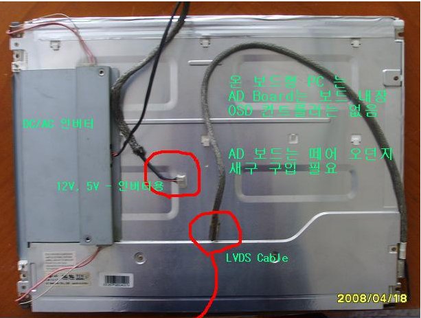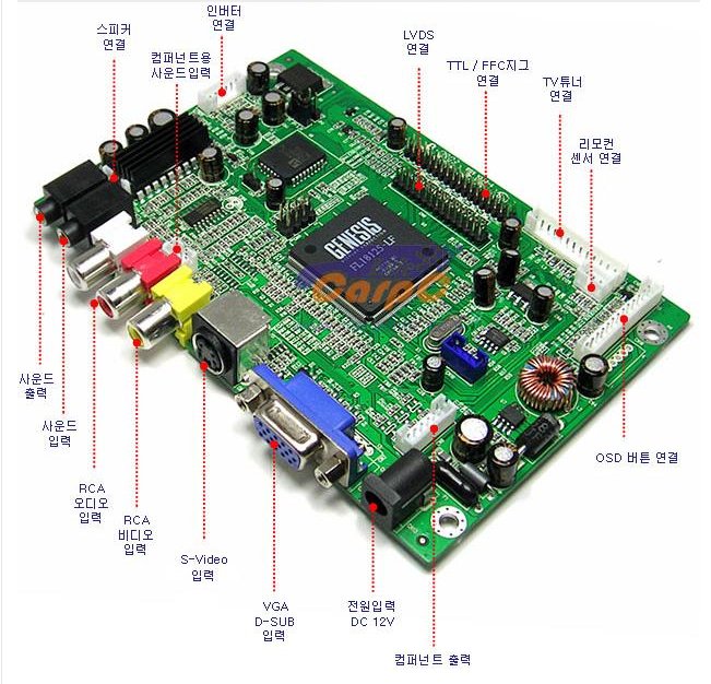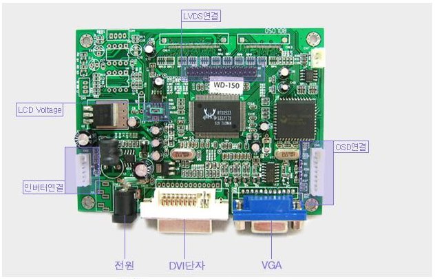 PC의 영상신호를 LCD에 전달하는 역할입니다. LCD의 디스플레이 방식은 디지털 방식입니다. PC내의 VGA의 D-sub로 출력된 Analog Signal을 LCD가 전달받을 수 있게 Digital Signal로 통역하는 중요한 역할을 합니다.