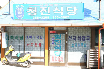 소머리고기 떨어지면 ‘하루장사 끝’ 시골장터에 가면 시장기를 가시기 위해 먹던 소머리국밥은 아직도 많은 이들의 사랑을 받고 있다. 시장 한쪽의 허름한 국밥집에서 인심 좋은 주인네가 퍼주던 국밥은 김치 하나면 한그릇 비우게 만들었다. 이런 정취가 아직도 남아 있는 송악면 기지시리의 청진식당.