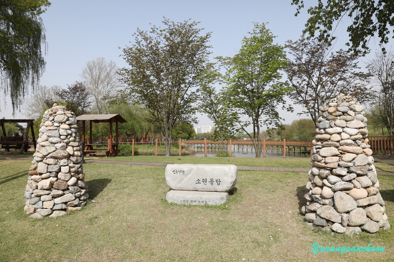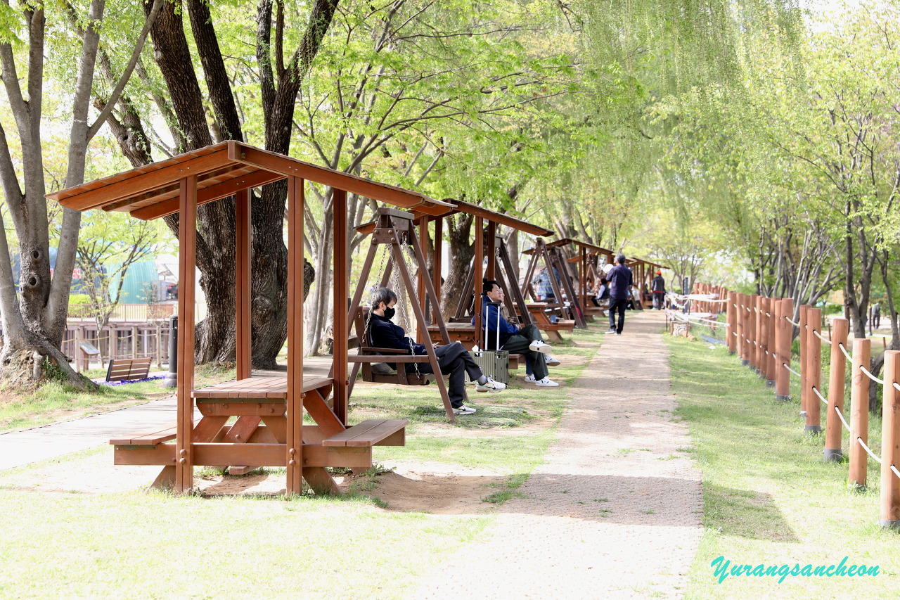 | 경기도 평택시 고덕면 궁리에 위치하고 있는 소풍정원은 지난 2013년 수변공원 형태로 조성되었으며, 누구나 무료로 입장이 가능한 공원이다. 자연속에 머물며 쉬어갈 수 있는 가족여행지로도 손색이 없는 소풍정원은 입구에 넓은 주차장도 별도로 마련되어 있으며, 공원 입구 오른편에는 4개구역으로 나뉜 캠핑장이 설치되어 있다. 공원의 주요시설들의 구성은 물놀이터와 전통담장과 배나무동산 등으로 이루어진 이화의 정원, 무지개숲과 초화원, 오름정원 등으로 구성된 무지개 정원 그리고 시간의 기둥과 초화원 등으로 조성된 빛의 정원, 소리나눔 파이프와 무늬억새군락 등으로 조성된 지지배배 정원 등과 메타세콰이어길 및 미로원 등 다양한 시설들이 데크산책길로 연결되어 있다. |