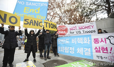스티븐 비건 대북특별대표 방한에 즈음한 평화행동을 외교부 앞에서 진행하고 있다. (사진출처 : 뉴스핌)