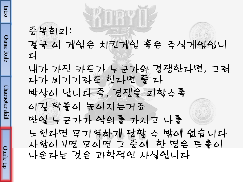 [신의선물]명품전략카드대전게임 "고려" 리뷰 3.초보 가이드 작성자신의선물(present)|작성시간17.08.09|조회수198 목록 댓글 0 글자크기 작게가 글자크기 크게가 다음검색 현재 게시글 추가 기능 열기 북마크 공유하기 신고 센터로 신고 댓글 댓글 0 댓글쓰기 답글쓰기 댓글 리스트