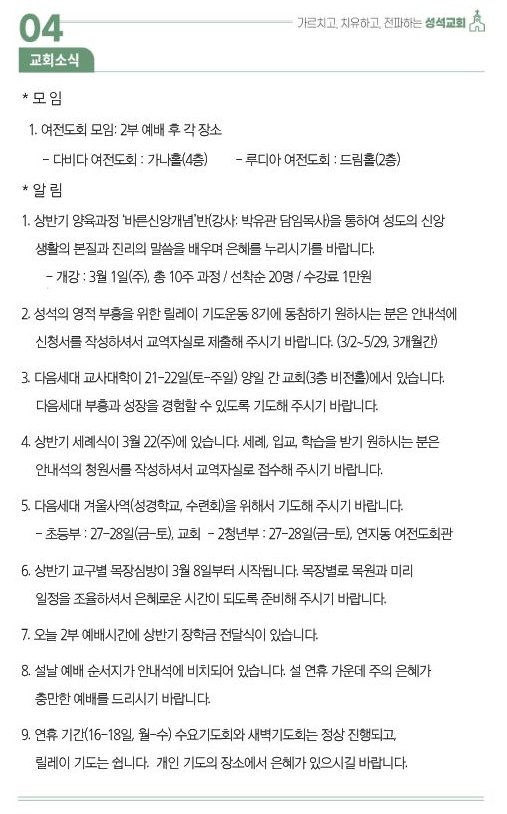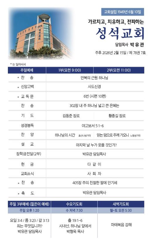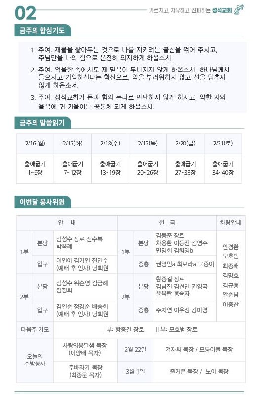 2026.2.15.(주일)주보 작성자김성수|작성시간26.02.14|조회수88 목록 댓글 0 글자크기 작게가 글자크기 크게가 대한예수교장로회 마장동 성석교회 원로목사 김성윤 담임목사 박유관 2025.2.15.(주일) 주보 다음검색 현재 게시글 추가 기능 열기 북마크 공유하기 신고 센터로 신고 댓글 댓글 0 댓글쓰기 댓글 리스트