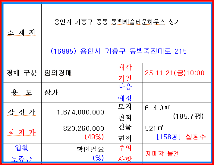 ★ 용인시 상가 경매 ♥ 경기 용인시 기흥구 중동 동백캐슬타운하우스상가 (반값) 경매 // 건물 158평,,, 경매가 8억2천,,,
