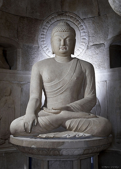 ▲ 윗쪽에 보이는 건물이 석굴암입니다.