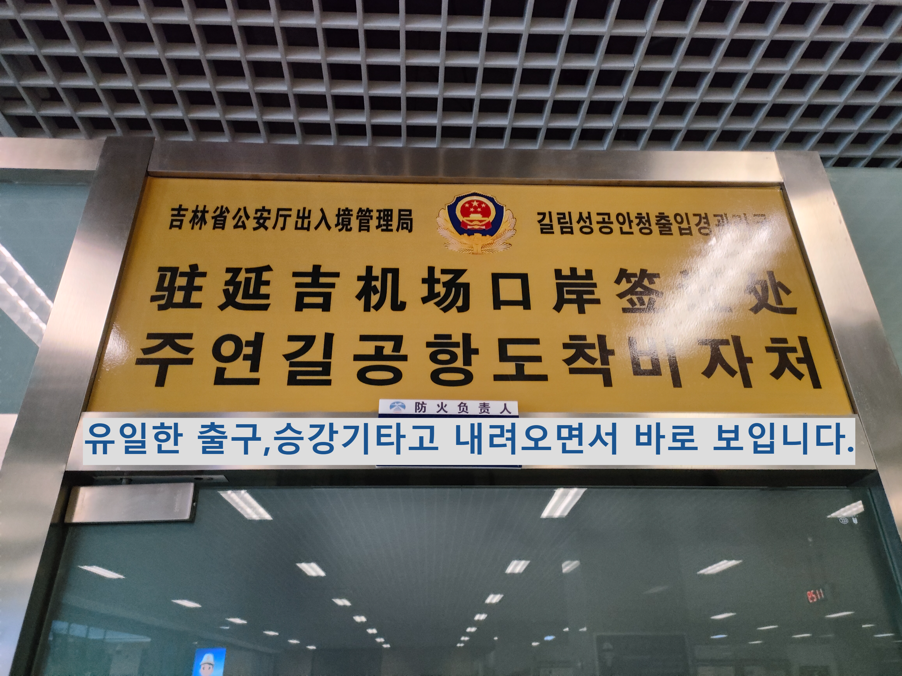 바로 왼쪽편에 “연길공항비자처” 중국어로 “延吉机场口岸签证处”라고 간판이 보입니다.