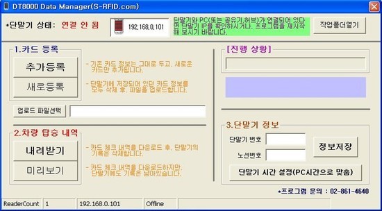 차량에 DT-8000 리더기를 장착하고, 차량 탑승자에게 등록된 RF카드(또는 RF태그)를 발급해주고,