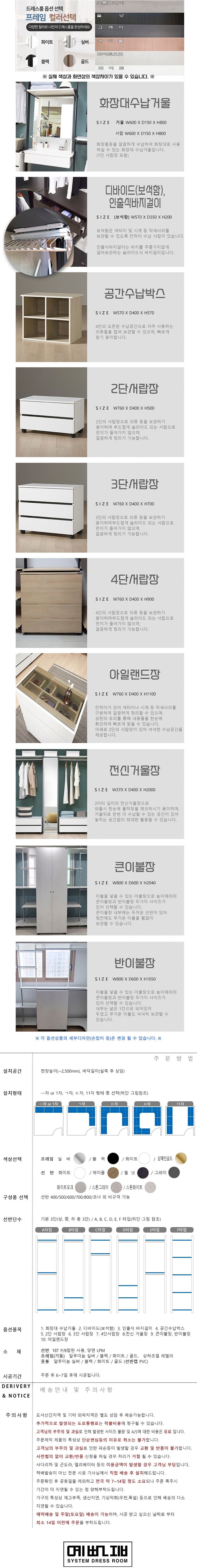 이렇게 기본 타입에 서랍장, 이불장, 화장대 등 옵션 품목을 같이 구성할 수 있으며