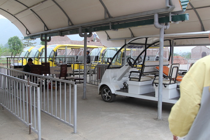 입구에서 전동카를 타야합니다.