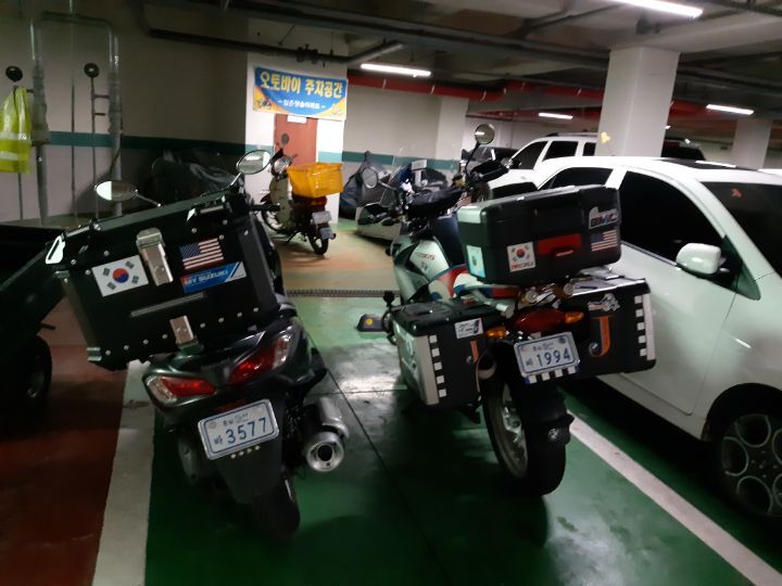 지하주차장에 바이크가 선배님오길 학수 고대 하는듯이보이네요 -