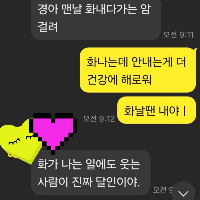 작성자다저스 작성시간 24.08.03 이런 말이 있습니다. 화는 참으면 암에 걸리고 화를 폭발하면 심혈관계 병이 걸린다ㅡ