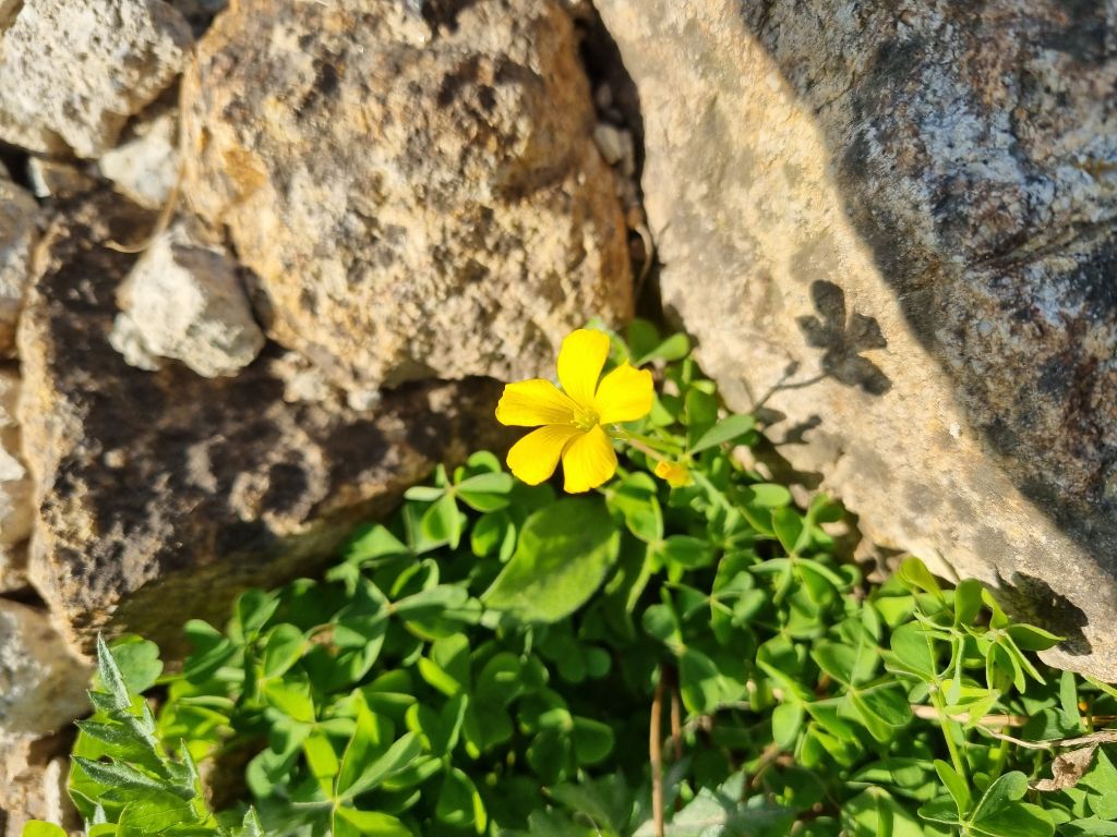 돌틈 사이에서 괭이나물꽃이 노랗게 피어 그 귀여운 자태를 뽐내고 있네요.